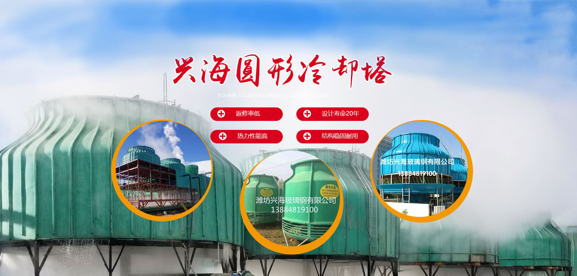 濰坊興海玻璃鋼有限公司,位于山東省濰坊市以南30公里安丘經濟技術開發區,是以專業生產大型玻璃鋼冷卻塔為主要產品的現代化先進企業,并兼營名種冷卻塔配件(風機、電機、減速機、收水器 、布水器、填料等)、承接各類冷卻塔改造、防腐處理工程。   興海玻璃鋼公司企業堅持科技研究與生產相結合,與國內知名高校及科研單位緊密合作,共同設計并制造五大類,八十多個系列,共千余種規格的玻璃鋼冷卻塔產品,已形成年產700臺玻璃鋼冷卻塔的生產規模,在中國大型玻璃鋼冷卻塔領域樹立了興海品牌。...